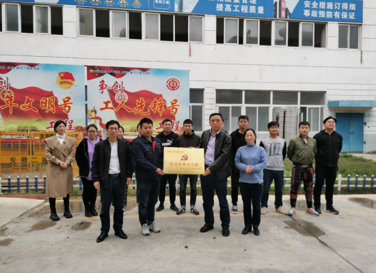 2020年11月18日,安徽二建黨委副書記、紀委書記仇多維、黨工部主任施用宏等一行赴蚌埠山香安置房EPC項目對“黨員先鋒號”、“工人先鋒號”、“青年文明號”的創建工作進行驗收。