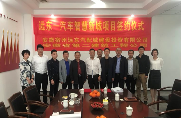 4月18日下午,安徽宿州遠(yuǎn)東汽配城建設(shè)投資有限公司與安徽二建公司就 “遠(yuǎn)東汽車智慧新城”項(xiàng)目在宿州舉行簽約儀式。安徽宿州遠(yuǎn)東汽配城建設(shè)投資有限公司董事長(zhǎng)朱成野、執(zhí)行董事徐子平、總經(jīng)理鄭志強(qiáng),公司副總經(jīng)理葉和永、安裝公司副經(jīng)理朱楊杰,以及相關(guān)人員等出席簽約儀式。